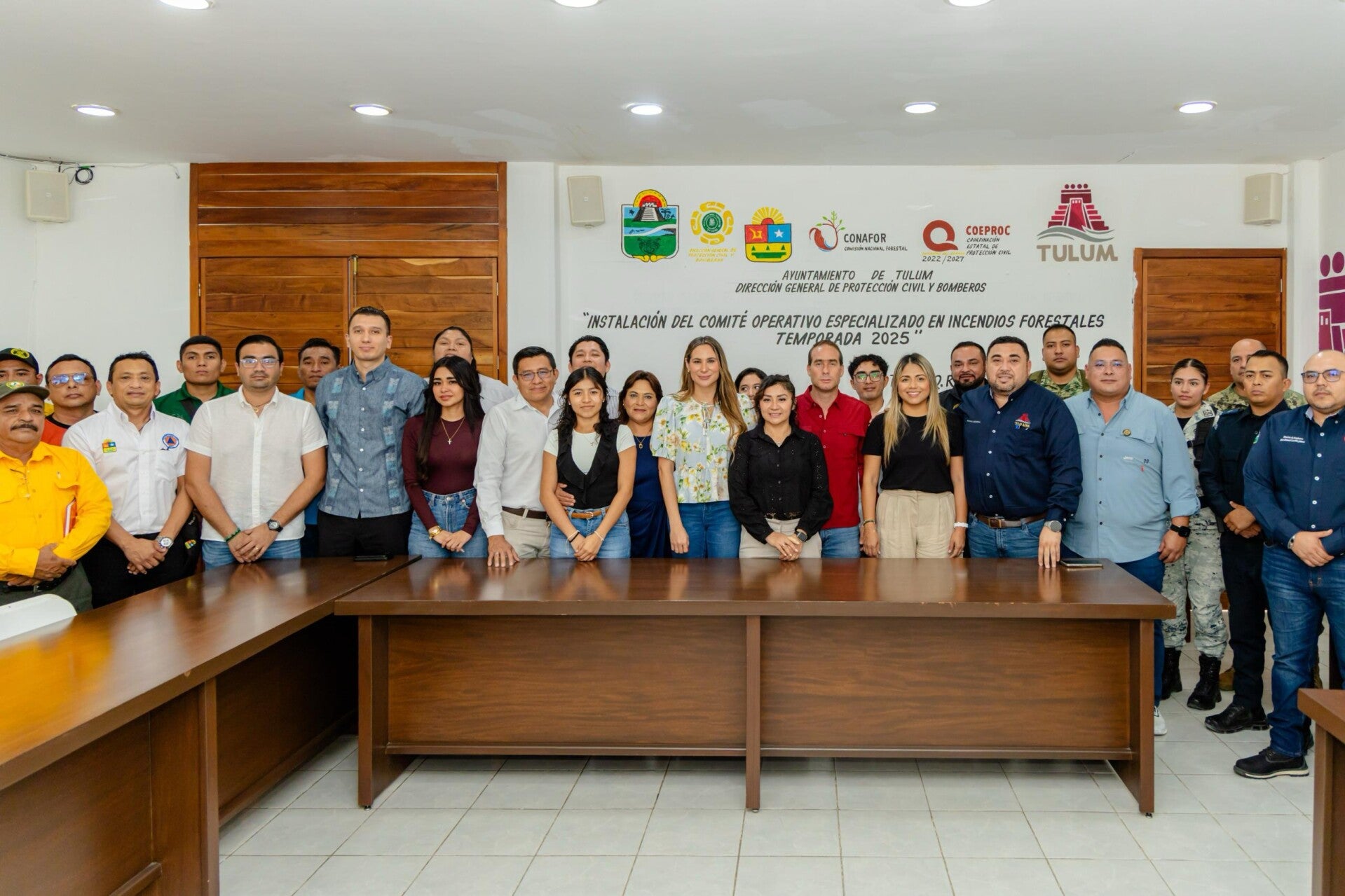 Tulum, Q.Roo., 11 de marzo de 2025.- En presencia del presidente municipal de Tulum, Diego Castañón Trejo, se llevó a cabo la instalación y toma de protesta del comité especializado en incendios forestales 2025, así mismo la meteoróloga, Shalom Rojas, dio a conocer los pronósticos de la temporada de incendios y las altas temperaturas que se avecinan.